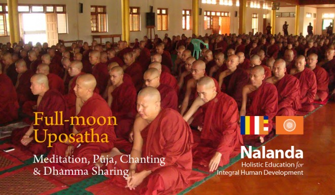 The Buddha taught that the Uposatha day is for “the cleansing of the defiled mind,” resulting in inner calm and joy. On this day, both lay and ordained members of the sangha intensify their practice, deepen their knowledge and express communal commitment through millennia-old acts of lay-monastic reciprocity. On these days, the lay followers make a conscious effort to keep the Five Precepts or (as the tradition suggests) the Eight Precepts. It is a day for practicing the Buddha’s teachings and meditation.